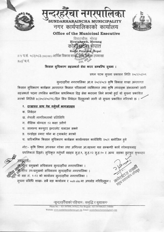 किसान सुचिकरण सहजकर्ता सेवा करार सम्बन्धी सूचना