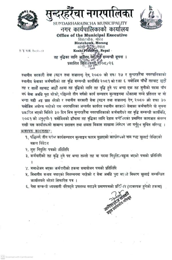 तह बृद्धिका लागि आवेदन पेश गर्ने सम्बन्धी सूचना
