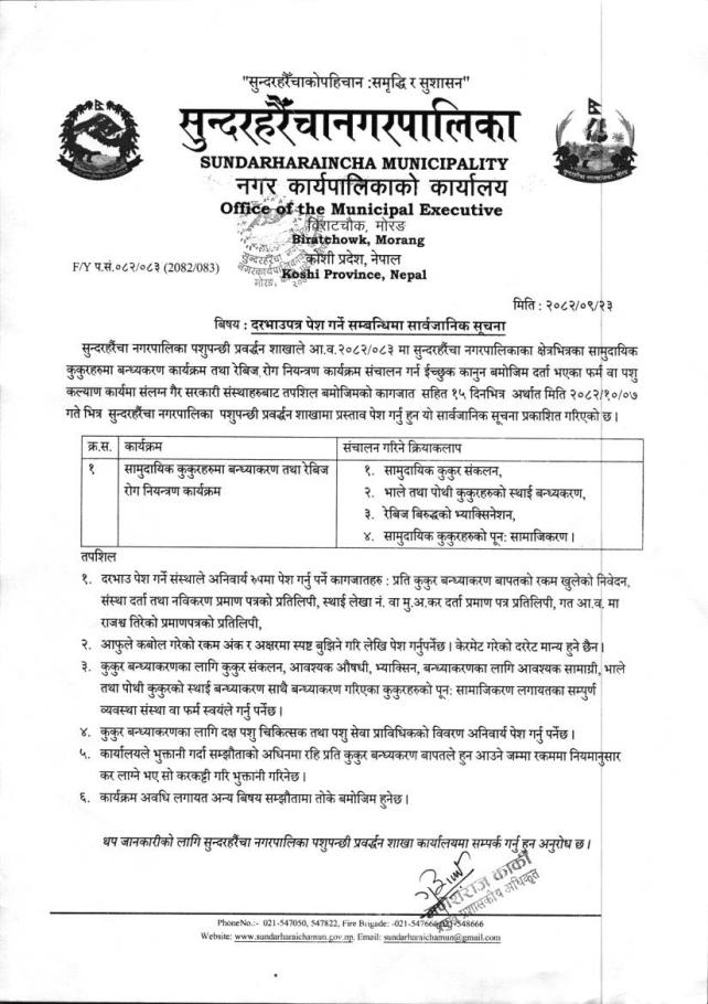» दरभाउपत्र पेश गर्ने सम्बन्धीमा सार्वजनिक सूचना