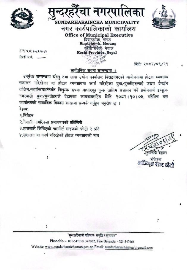 सुन्दरहरैँचा नगरपालिका,नगर कार्यपालिकाको कार्यालय, विराटचौक, मोरङ