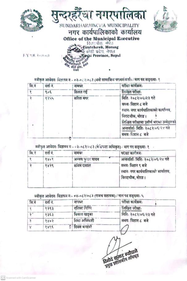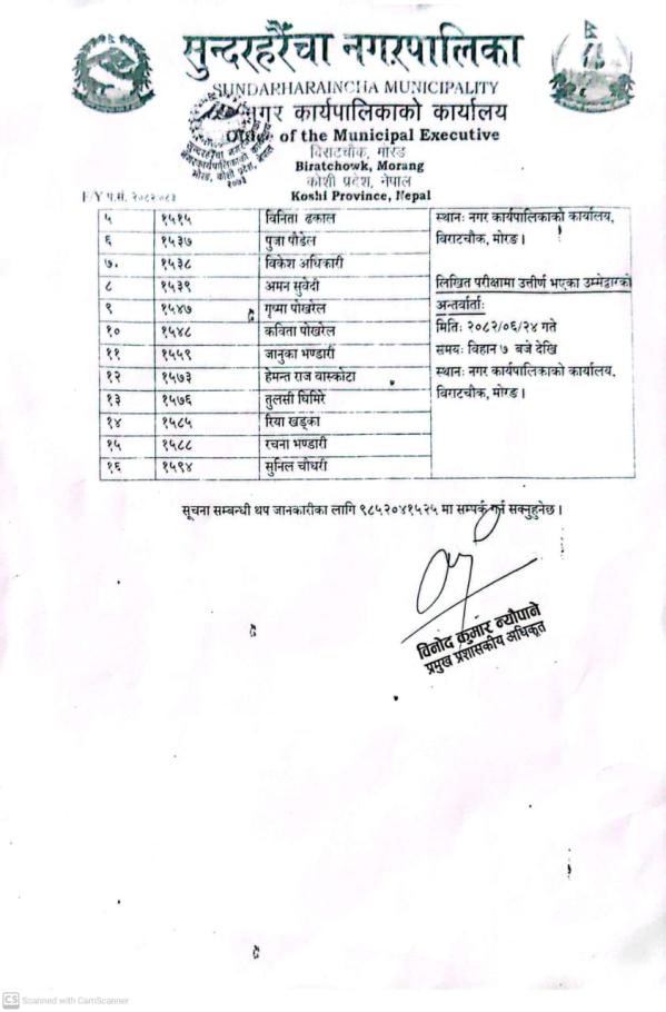 सुन्दरहरैँचा नगरपालिका,नगर कार्यपालिकाको कार्यालय, विराटचौक, मोरङ