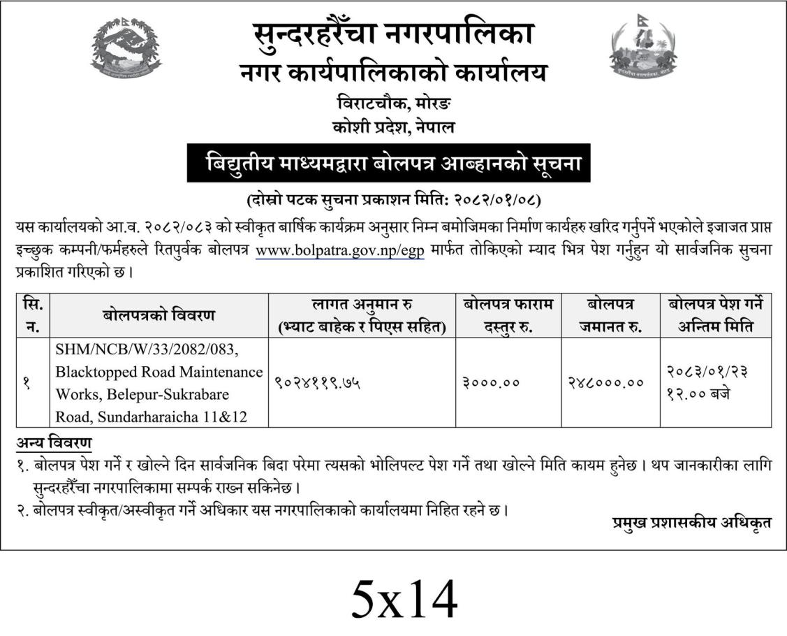 बिदुतिय माध्यमद्वारा बोलपत्र आवहानको सूचना