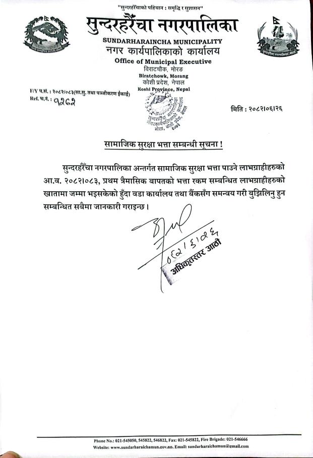 » सामाजिक सुरक्षा भत्ता सम्बन्धी सूचना