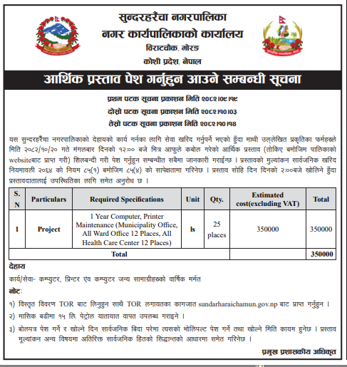 आर्थिक प्रस्ताव पेश गर्न आउने सम्ब्धी सूचना