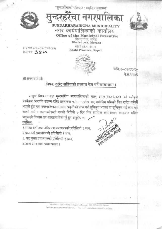 घाँसको बिउको दररेट पेश गर्ने सम्बन्धी सूचना