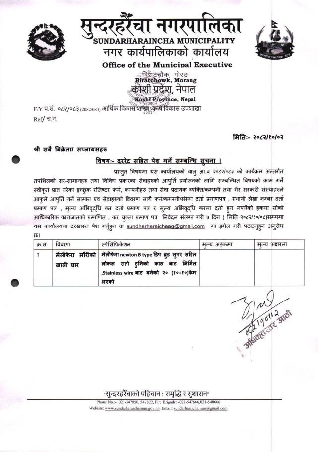 दररेट सहित पेश गर्ने सम्बन्धी सूचना ०२