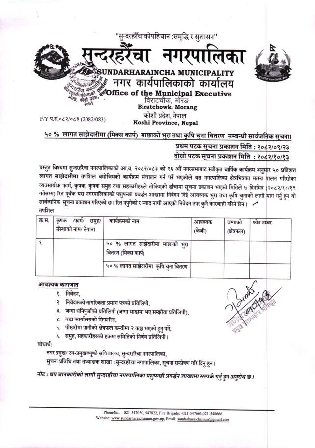 दोस्रो पटक प्रकाशित सूचना माछा र कृषि चुना वितरण
