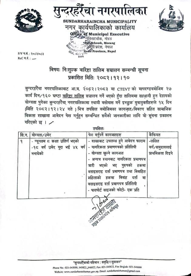 » निःशुल्क वारिष्टा तालिम सम्बन्धी सूचना