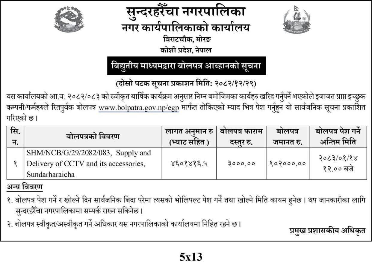 बिद्युतिय माध्यम द्वार बोलपत्र आवहानको सूचना
