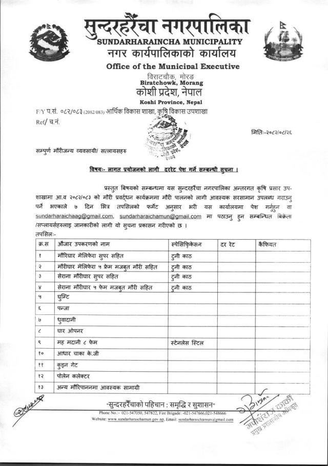 सुन्दरहरैँचा नगरपालिका,नगर कार्यपालिकाको कार्यालय, विराटचौक, मोरङ