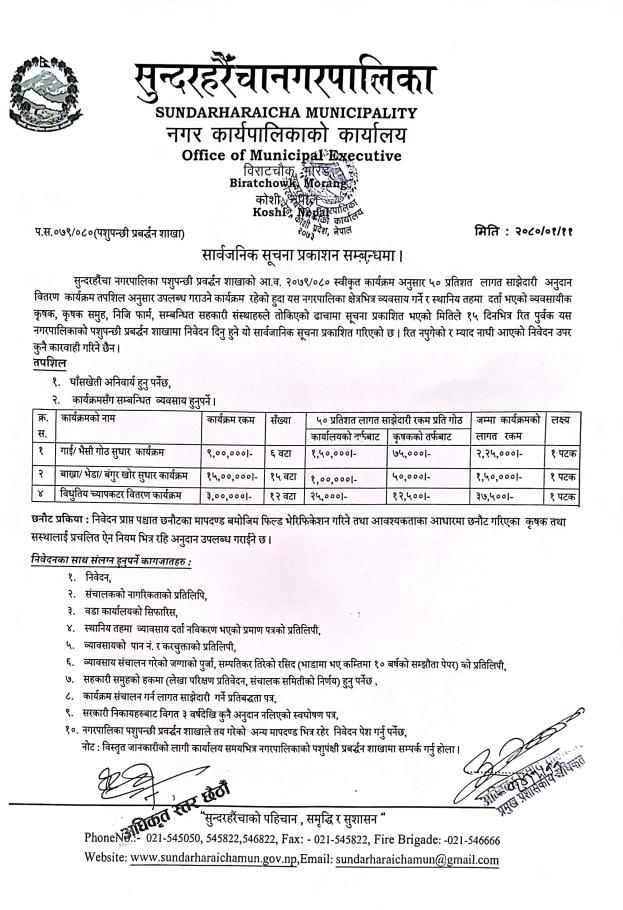 सुन्दरहरैँचा नगरपालिका,नगर कार्यपालिकाको कार्यालय, विराटचौक, मोरङ