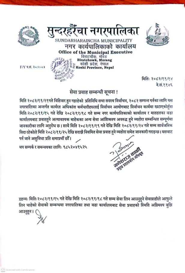 सुन्दरहरैँचा नगरपालिका,नगर कार्यपालिकाको कार्यालय, विराटचौक, मोरङ