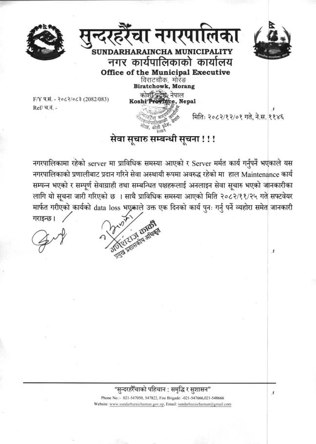 सुन्दरहरैँचा नगरपालिका,नगर कार्यपालिकाको कार्यालय, विराटचौक, मोरङ