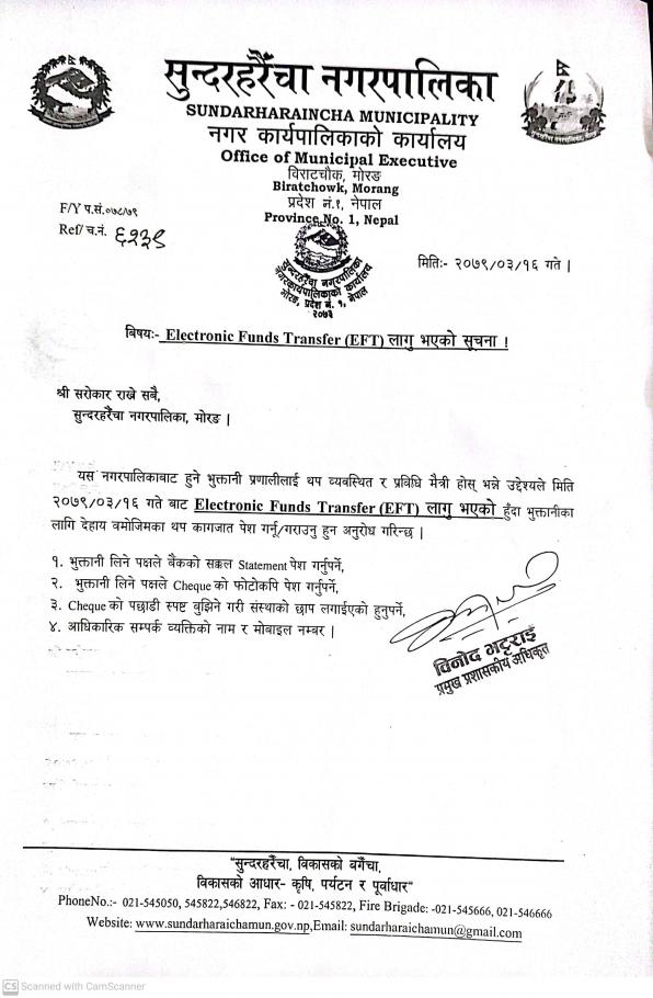EFT लागु भएको सूचना