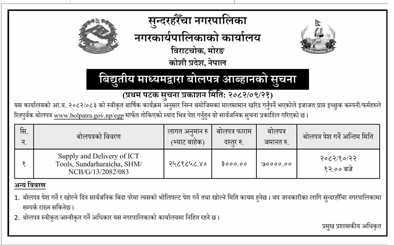 सार्वजनिक खरिद/बोलपत्र सूचना